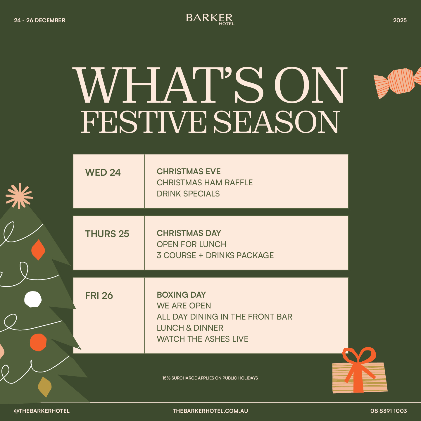 The festive season is here, and your local favourite – Barker Hotel – is all decked out and ready to celebrate. 🎄🎅