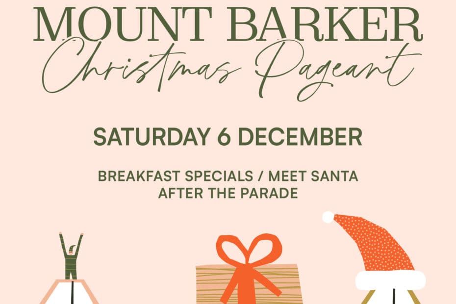 Mount Barker comes alive for its most magical morning of the year! Kick off with hearty breakfast specials at The Barker Hotel, then join the excitement as Santa makes his grand appearance after the parade. A festive morning full of cheer, laughter, and holiday spirit awaits – bring the family and make memories that sparkle!