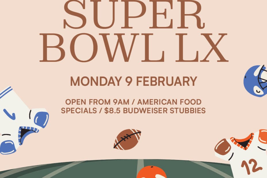 Super Bowl LX live at the Barker Hotel from 9am with American food specials and $8.50 Budweiser stubbies.