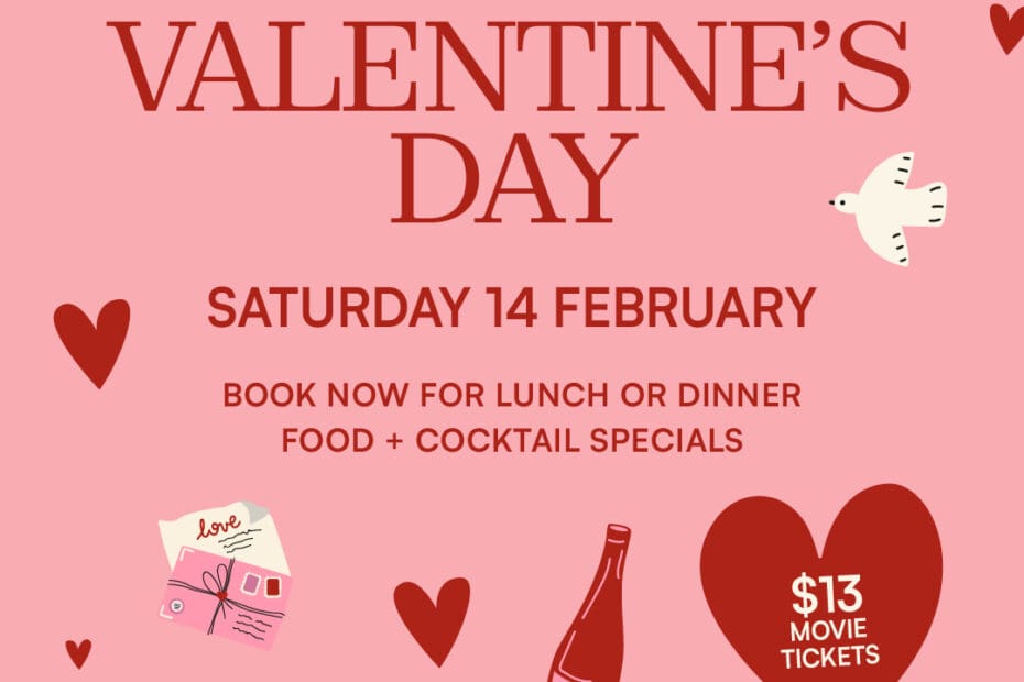 Celebrate Valentine’s Day with us over lunch or dinner, featuring food and cocktail specials made for sharing. Make a day (or night) of it with $13 movie tickets, perfect for an easy date before or after your meal.