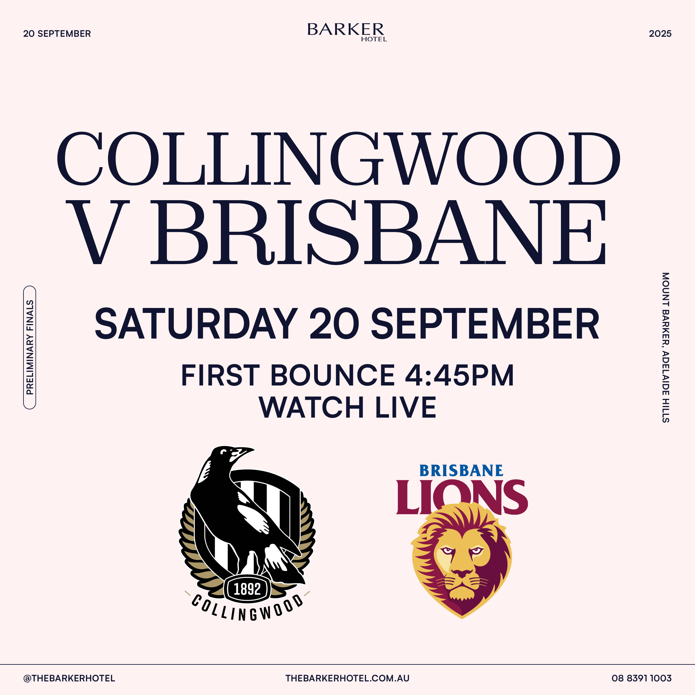 Catch all the action live this Saturday as Collingwood takes on Brisbane Lions in the AFL Prelim Final! Join us for an electric atmosphere, ice-cold drinks, and great food while you watch every goal, tackle, and moment on the big screens.