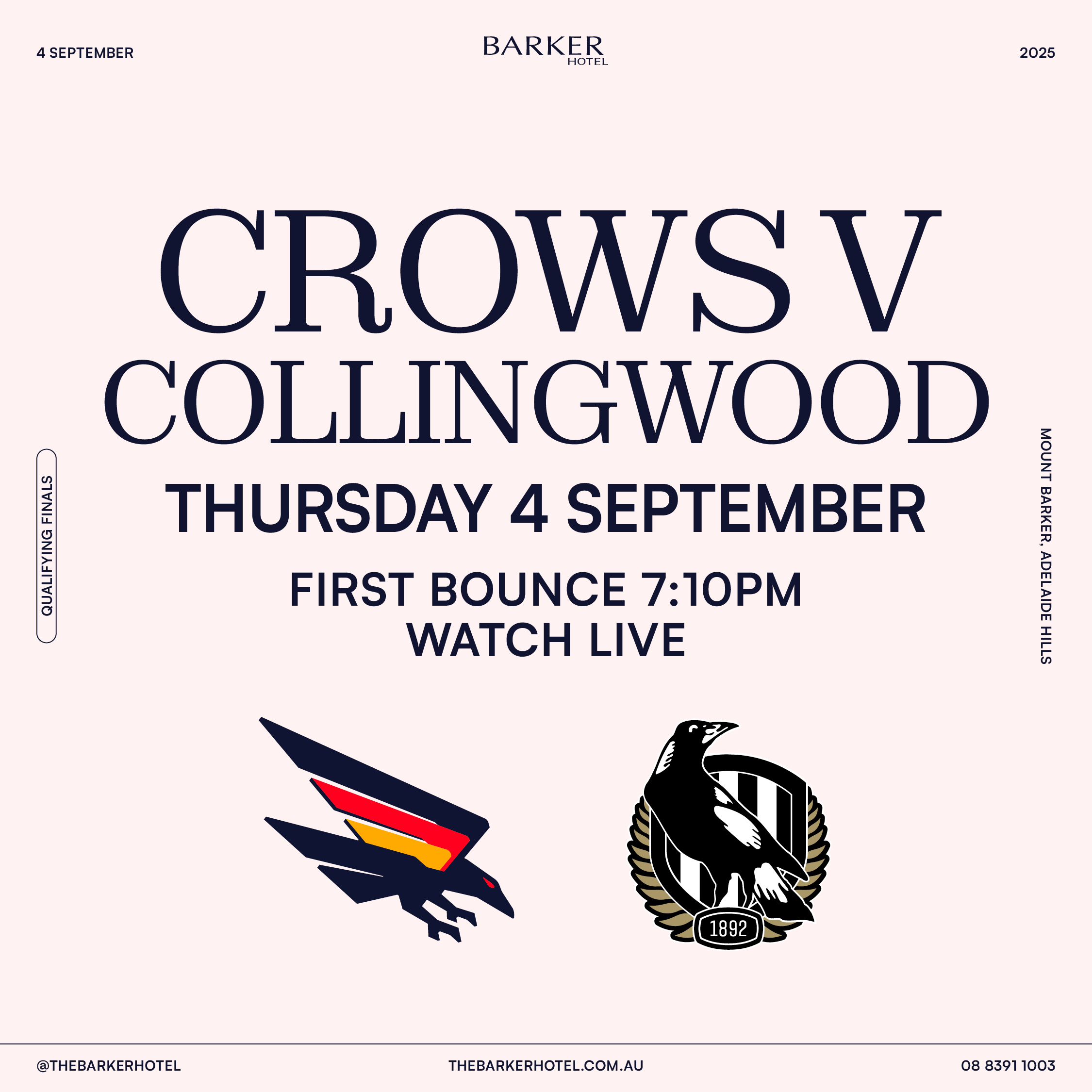 Feel every crunching tackle, soaring mark and game-changing goal live on the big screens at the Barker . Bring your mates, wear your colours, and get swept up in the finals atmosphere from first bounce.