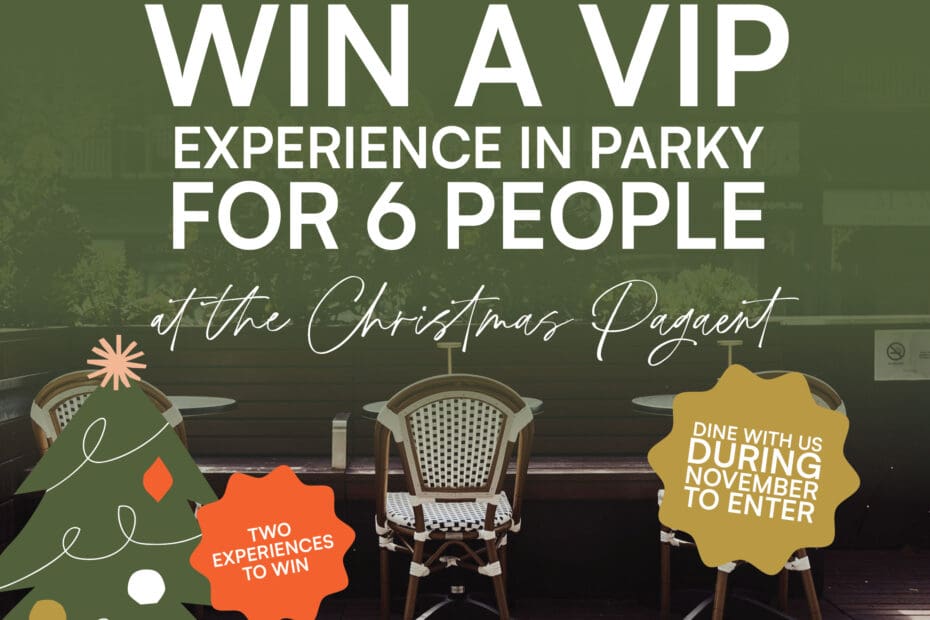 Dine with us this November for your chance to win a VIP experience in Parky for six people at the Mount Barker Christmas Pageant on Sat, 6 December! Enjoy prime views, festive cheer, and a magical day out with family or friends.